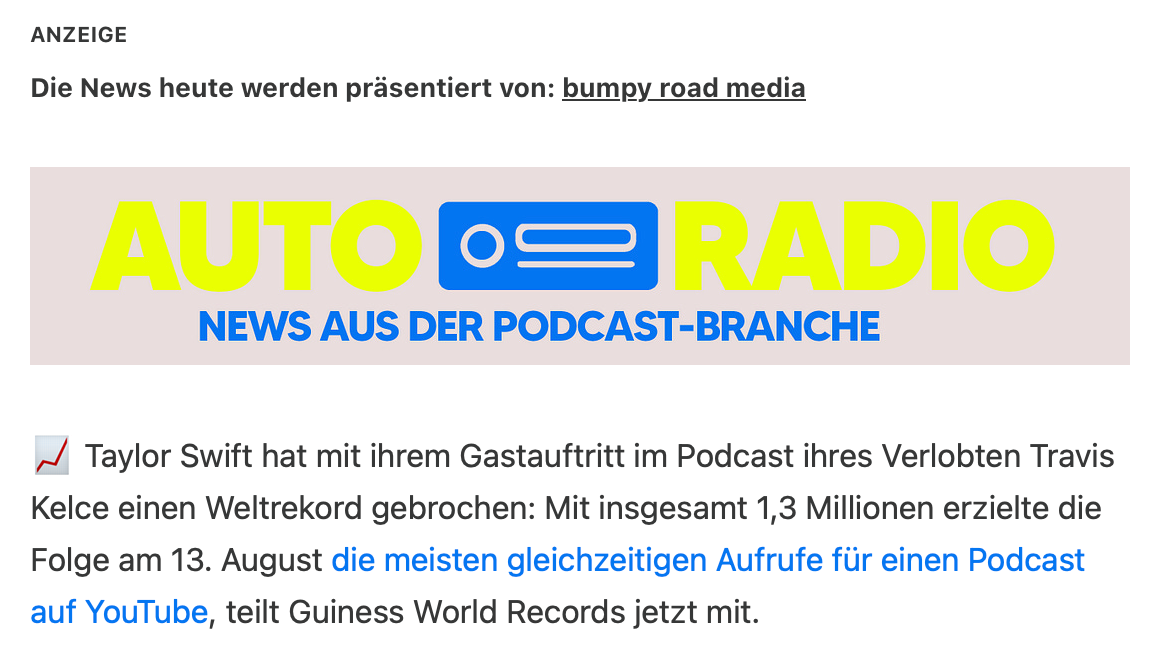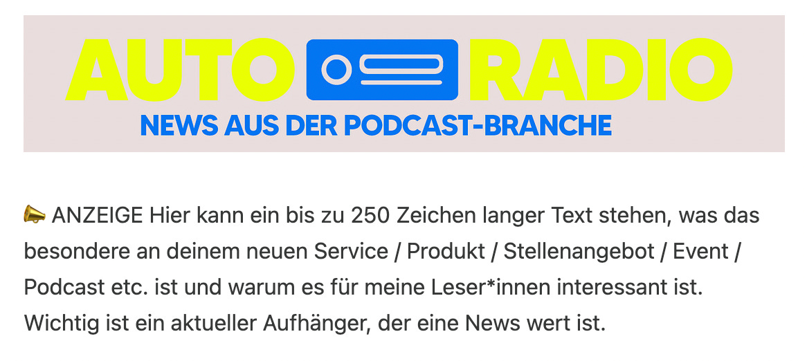 möglich beim AUTORADIO (News) und ANSCHNALLEN (neue Podcasts)