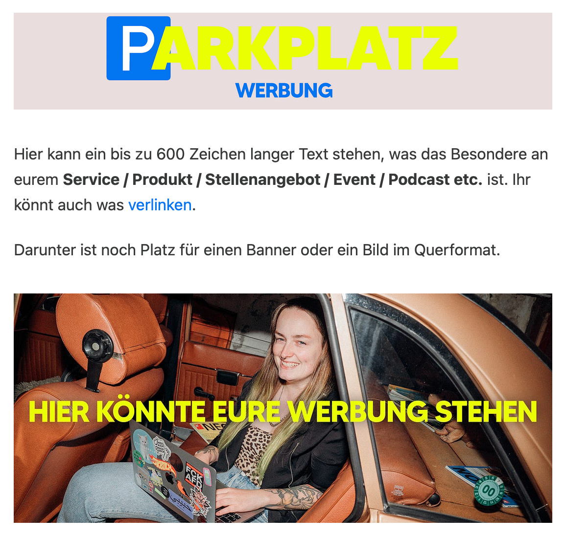 Option 1: Werbung auf dem PARKPLATZ
