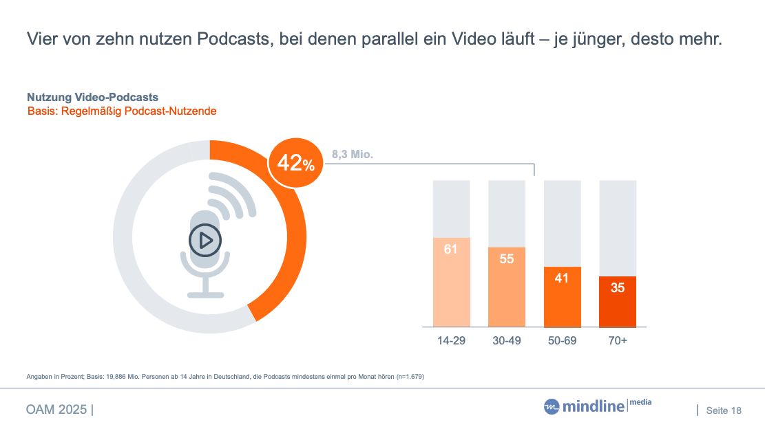 Das Ding ist ja: Der Podcast-Konsum steigt immer weiter. Klar, nicht mehr so rasant wie während Corona – aber Podcasts gelangen immer tiefer in den Mainstream. (Ich musste schon sehr lange niemandem mehr erklären, was ein Podcast ist.)